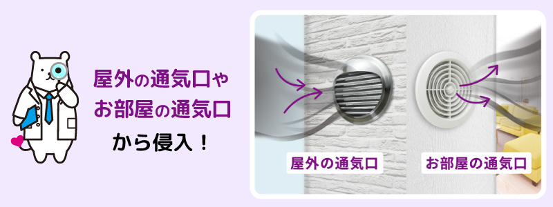 そのため、通気口からは常に外気が流入し花粉の季節には“花粉を含んだ空気”が家の中に入ってきてしまうのです。