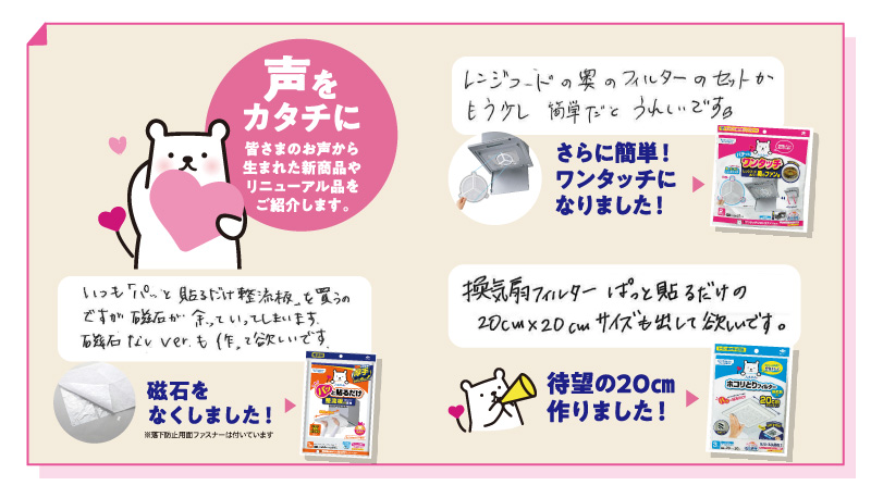 お客様から寄せられた声から、開発に繋がった商品もあります!