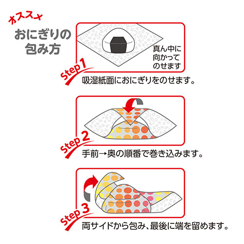 ●おにぎりを包んですぐに開くと吸湿紙にくっつくことがあります。