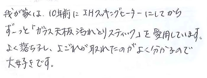 「ガラス天板汚れとりスティック」の効果を実感していただけて、とても嬉しいです。