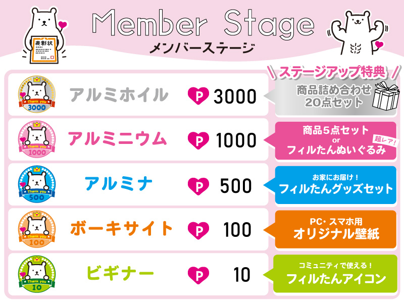 実は「おたのしみCLUBコミュニティ」のランクアップ特典で、フィルたんアイテムがもらえるかも…!?ぜひチェックしてみてくださいね!
