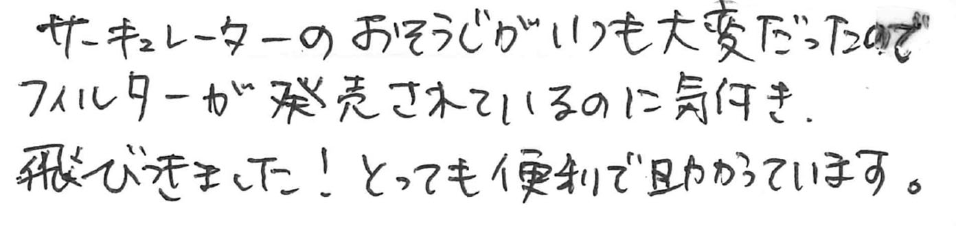 サーキュレーターのおそうじがいつも大変だったのでフィルターが発売されているのに気付き、飛びつきました!とても便利で助かっています。